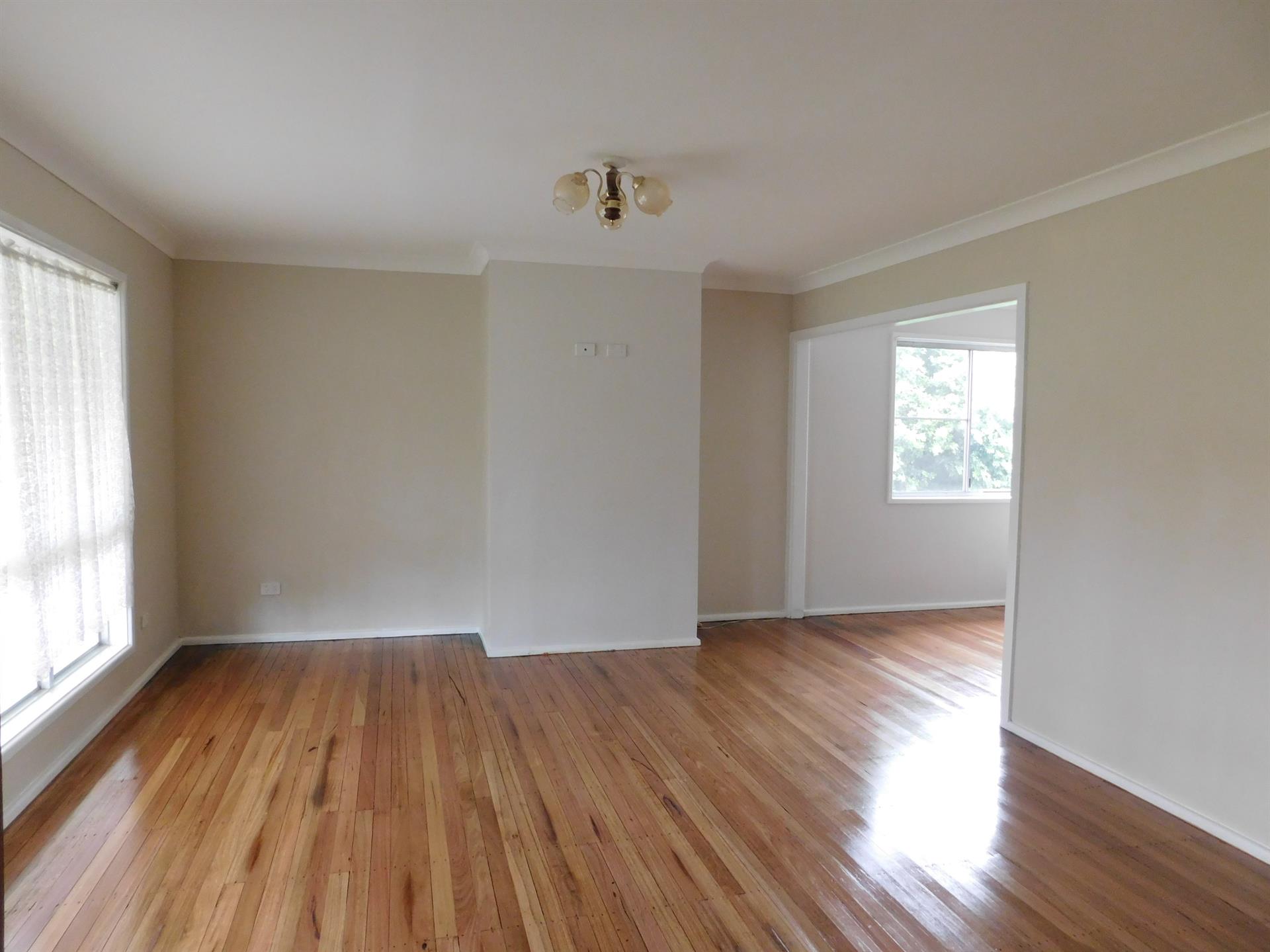 With timber flooring - all been revarnised - modern bathroom separate toilet, new carpets in bedrooms.